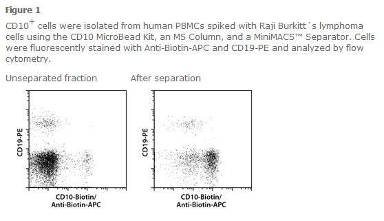 The CD10 MicroBead Kit was developed for the enrichment or depletion of CD10+ cells from bone marrow or other cell sources.