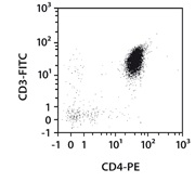 The CD4+ T Cell Isolation Kit has been developed for the isolation of untouched CD4+ T helper cells from human peripheral blood mononuclear cells (PBMCs). Non-CD4+ cells, i.e., CD8+ T cells, monocytes, neutrophils, eosinophils, B cells, dendritic cells, NK cells, granulocytes, γ/δ T cells, or erythroid cells are labeled by using a cocktail of biotin-conjugated antibodies. The cocktail contains antibodies against CD8, CD14, CD15, CD16, CD19, CD36, CD56, CD123, TCRγ/δ, and CD235a (Glycophorin A). Subsequently, non-target cells are magnetically labelled with the CD4+ T Cell MicroBead Cocktail. Isolation of highly pure T cells is achieved by depletion of magnetically labeled cells.
