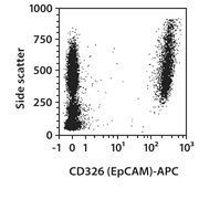Clone HEA-125 recognizes the CD326 antigen, also known as human epithelial antigen (HEA), epithelial cell adhesion molecule (EpCAM), or epithelial-specific antigen (ESA), and is involved in cell adhesion. The CD326 antigen is broadly expressed on the basolateral surface of carcinoma and epithelial cells in tissues or on circulating tumor cells and cancer stem cells, but is not found on melanoma, neuroblastoma, sarcoma, lymphoma, leukemia cells, or normal fibroblasts.