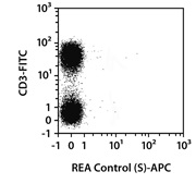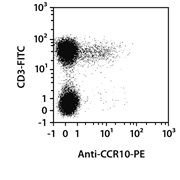 Clone REA326 recognizes the human C-C chemokine receptor type 10 (CCR10) antigen, a Multi-pass membrane protein which is also known as G-protein coupled receptor 2 (GPR2). CCR10 is expressed by various subsets of innate-like T cells that are programmed to localize to the skin during their developmental processes in the thymus. Circulating T cells might be imprinted by skin-associated antigen-presenting cells to express CCR10 for their recruitment to the skin during the local immune response. On the other hand, IgA antibody-producing B cells generated in mucosa-associated lymphoid tissues express CCR10 for their migration and maintenance at mucosal sites. CCR10 and its ligands chemokines CCL27 and CCL28 are uniquely involved in the epithelial immunity. CCL27 is up-regulated in inflamed skin, whereas CCL28 is selectively expressed in intestinal epithelium. In vitro, CCL27−CCR10 interactions mediate the preferential migration of skin-homing CLA-bearing memory T cells. Increasing evidence also found that CCR10/ligands are involved in regulation of other immune cells in epithelial immunity and are frequently exploited by epithelium-localizing or -originated cancer cells for their survival, proliferation and evasion from immune surveillance.