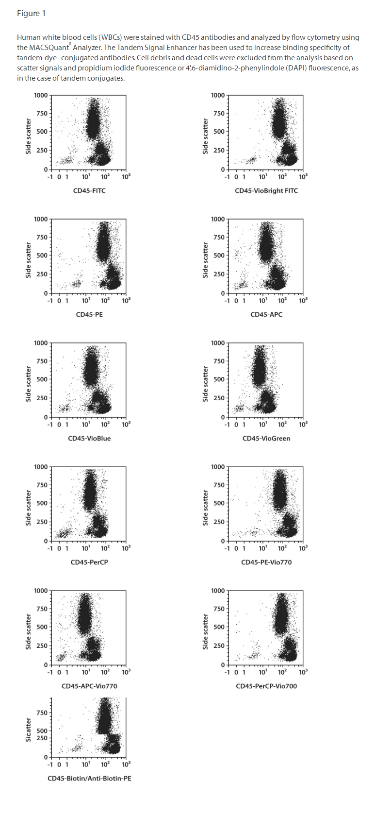 The CD45 antibody recognizes the human CD45 antigen, a tyrosine phosphatase also known as leukocyte common antigen (LCA). The CD45 molecule is required for T and B cell activation and is expressed in at least five isoforms depending on the differentiation status of the cell. The CD45 antibody recognizes a common epitope of all CD45 isoforms.