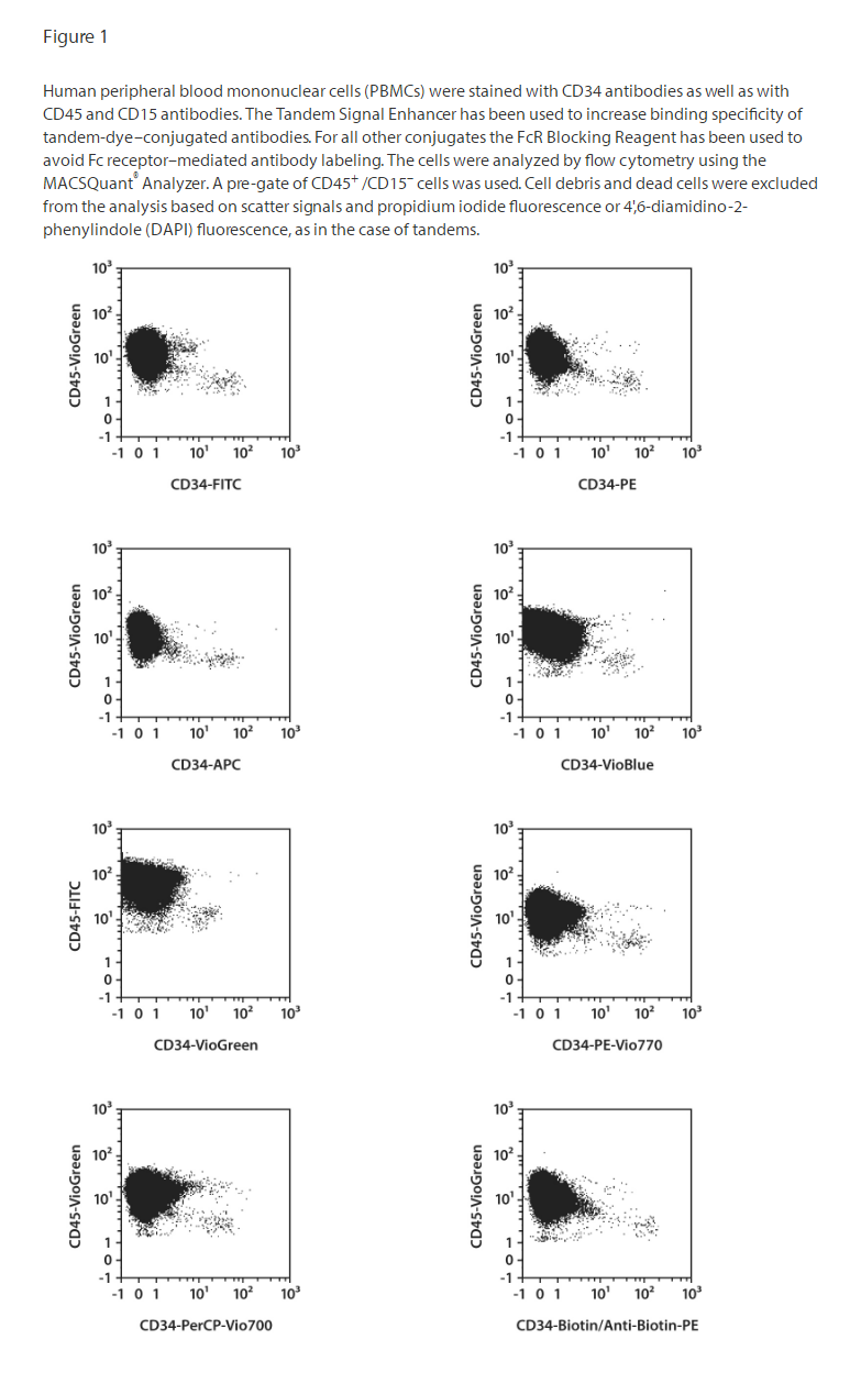 The monoclonal antibody clone AC136 detects a class III epitope of the CD34 antigen. This epitope is different than the one recognized by the clone used in the CD34 MicroBead Kits.