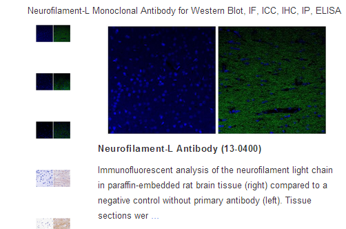 13-0400 detects the neurofilament, light chain in human, rat, and mouse samples.