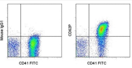 Description: CD62P (also known as P-selectin and GMP-140) is a 140-kDa cell adhesion molecule that can be induced on endothelial cells and platelets. During inflammation, this selectin mediates adhesion of monocytes and neutrophils to activated platelets, as well as leukocyte rolling on endothelial cells. The major ligand for CD62P on neutrophils is P-selectin glycoprotein ligand-1 (PSGL-1). This monoclonal antibody recognizes an epitope that is conserved across several species (e.g. mouse, human, and rat).