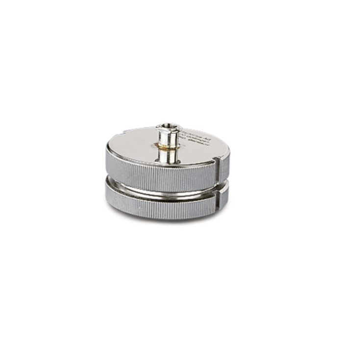 Stainless steel holder for solvents and chemicals. The PTFE-coated surface on the top part is an important property of the filter holder and ensures leak proof sealing without a sealing ring. As a result, the heat-resistance is extremely good, and the chemical compatibility depends only on the inserted filter type. The top part can easily be mounted on the bottom part using the enclosed tightening tool. Filter supports in the top and the bottom parts allow filtration in either direction.