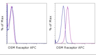 Description: This monoclonal AN-V2 antibody reacts with the human oncostatin M (OSM) receptor. OSM, which belongs to the interleukin-6 cytokine family, is produced by T cells, activated monocytes, and dendritic cells. In humans, OSM can bind two unique receptor complexes. The type I OSM receptor is composed of the LIFR associated with gp130, and recognizes both LIF and OSM. The type II OSM receptor, which consists of gp130 and the OSMR subunit, specifically binds the cytokine, leading to activation of the JAK/STAT signaling pathway. Reports have also indicated a soluble form of the OSM receptor, which this antibody also recognizes. The OSM receptor is expressed in the bone marrow, endothelium, liver, lung, and numerous tumor cell lines.