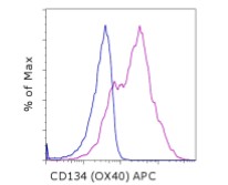 Description: The ACT35 monoclonal antibody reacts with human CD134, also known as OX-40. A member of the TNF receptor superfamily, CD134/OX-40 is a 50 kDa type I membrane glycoprotein expressed by activated T lymphocytes. The interaction of CD134 with OX-40L has been implicated in T cell-dependent humoral response, regulation of primary T cell expansion, survival of T cells, size of the memory T cell pool and regulation of tolerance in the CD4+ T cell compartment.