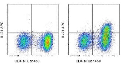 Preliminary data suggest that clone FFA21 recognizes a different epitope than anti-mouse IL-21 clone mhalx21 (cat. 51-7213).