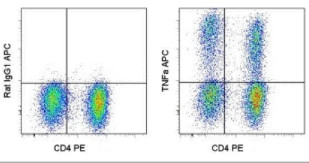 Description: The MP6-XT22 antibody reacts with mouse tumor necrosis factor-alpha (TNF alpha), a 17 kDa cytokine produced by monocytes, macrophages, neutrophils, NK cells and CD4(+) T cells. TNF alpha has cytolytic activity against a range of tumor cells and is important in immune regulation. TNF alpha forms dimers and trimers and also exists as a 26 kDa membrane-bound form.