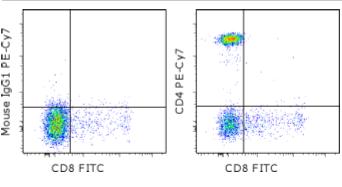Description: The SK3 monoclonal antibody reacts with human CD4, a 59-kDa cell surface receptor expressed by a majority of thymocytes, a subpopulation of mature T helper cells, and at low levels on monocytes. CD4 is a receptor for the human immunodeficiency virus (HIV). SK3 blocks HIV binding and mixed lymphocyte reaction. The SK3 and RPA-T4 monoclonal antibodies do not cross-block binding, suggesting recognition of distinct epitopes.