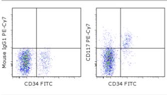 Description: The 104D2 monoclonal antibody reacts with human CD117, also known as c-Kit , Steel factor receptor and stem cell factor receptor. A member of the tyrosine kinase receptor family, this 145 kDa molecule is expressed by hematopoietic progenitor cell subsets and mast cells. The interaction of c-Kit and Steel factor promotes proliferation and differentiation of hematopoietic progenitor cells and mast cell differentiation. CD117 is also expressed by melanocytes and plays a role in signaling and activation of these cells.