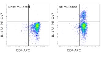 Description: The eBio64DEC17 antibody reacts with human IL-17A. The eBio64DEC17 antibody is a neutralizing antibody. Interleukin-17A (IL-17A) is a CD4+ T cell-derived cytokine that promotes inflammatory responses in cell lines and is elevated in rheumatoid arthritis, asthma, multiple sclerosis, psoriasis, and transplant rejection. The cDNA encoding human IL-17A was isolated from a library of CD4+ T cells; the encoded protein exhibits 72 percent amino acid identity with HVS13 , an open reading frame from a T lymphotropic Herpesvirus saimiri, and 63 percent with mouse CTLA-8 (cytotoxic T-lymphocyte associated antigen-8). Human IL-17A exists as glycosylated 20-30 kD homodimers. High levels of IL-17A homodimer are produced by activated peripheral blood CD4+ T-cells. IL-17A enhances expression of the intracellular adhesion molecule-1 (ICAM-1) in human fibroblasts. Human IL-17A also stimulates epithelial, endothelial, or fibroblastic cells to secrete IL-6, IL-8, G-CSF, and PGE2. In the presence of human IL-17A, fibroblasts can sustain the proliferation of CD34+ hematopoietic progenitors and induce maturation into neutrophils. Mouse, rat, and human IL-17A can induce IL-6 secretion in mouse stromal cells, indicating that all homologs can recognize the mouse IL-17A receptor.