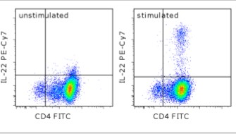 Description: The 22URTI monoclonal antibody reacts with human interleukin(IL)-22. IL-22 is a 20 kDa member of the IL-10 cytokine family that is secreted primarily by Th17 and NK cells. Nevertheless, other T cells have also been shown to produce IL-22. In in vitro Th17 cultures, induction of IL-22 expression is greater in response to IL-23 than IL-6 or TGF beta, suggesting that this cytokine may be secreted by more fully differentiated Th17 cells in vivo. A heterodimer consisting of IL-10R2 and IL-22R1 serves as the receptor for IL-22.