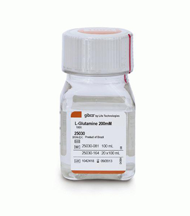 Gibco® L-glutamine is an amino acid required for cell culture. L-glutamine participates in the formation of purine and pyrimidine nucleotides, amino sugars, glutathione, L-glutamate and other amino acids, as well as in protein synthesis and glucose production. L-Glutamine, unlike most other amino acids, is not stable in solution. The rate at which this degradation proceeds is a function of time, temperature and pH. Life Technologies also offers Gibco® GlutaMAX™ supplement as a stable alternative to L-glutamine.