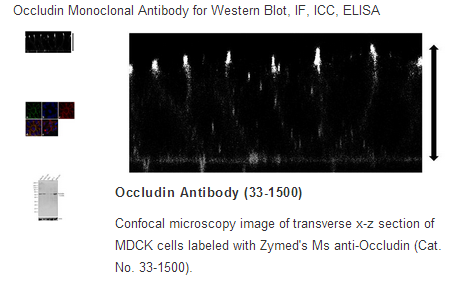 小鼠抗闭锁蛋白;抗人、小鼠、大鼠和鸡闭锁蛋白的非偶联单克隆抗体。 抗体经过验证可用于 Western Blot、免疫分析 (ELISA) 和免疫细胞化学/免疫荧光分析。 抗闭锁蛋白能识别 OCLN 基因(也称为 Ocln 和 Tpmt)的表达产物。