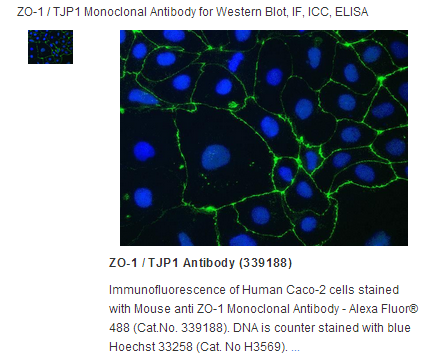 Tight junctions are complexes of proteins that create intercellular boundaries between the plasma membrane domains of epithelial and endothelial cells. Many of the tight junction-associated proteins are members of the membrane- associated guanylate kinase (MAGUK) family and include occludin, ZO-1, ZO-2 and ZO-3. These proteins are thought to have both structural and signaling roles, and are characteristically defined by three protein-protein interaction modules: the PDZ domain, the SH3 domain and the guanylate kinase (GuK) domain. ZO-1 forms complexes with either ZO-2 or ZO-3. In addition, these proteins can also associate with claudin, occludin and F-actin, at tight junction stands, where they provide a linkage between the actin cytoskeleton and the tight junction. ZO-1 expression is significantly reduced in many breast cancer lines. ZO-2 and ZO-3 are ubiquitously expressed within epithelial tight junctions, and unlike ZO-1, which is also expressed at cell junctions of cardiac myocytes, ZO-2 is not expressed in nonepithelial tissue.