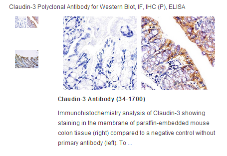 Claudin 1-8 proteins are a family of transmembrane proteins associated with tight junctions. Tight junctions are specialized regions of cell to cell contact; made up of a network of strands to act as a molecular gasket for preventing the leakage of ions, water etc. between cells. They are abundant in luminal epithelial sheets where they maintain epithelial cell polarity. Different tissues exhibit different claudin composition.