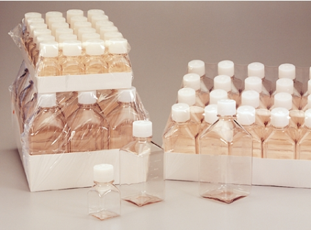 无菌,PETG 方形有刻度培养基瓶,带盖,聚对苯二酸乙二醇酯共聚物,天然高密度聚乙烯盖,250毫升容量,每箱60