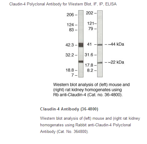 CLAUDIN4 is an integral membrane protein belonging to the claudin family, a family of cellular adhesion molecules that are components of tight junctions. CLAUDIN4 is a component of tight junction strands and may play a role in internal organ development and function during pre- and postnatal life. The CLAUDIN4 gene is deleted in Williams-Beuren syndrome, a neurodevelopmental disorder affecting multiple systems. CLAUDIN4 is frequently overexpressed in ovarian and other epithelial cancers.