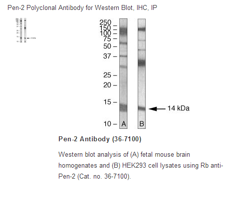 Synthetic peptide derived from the N-terminal region of the human and mouse Pen-2