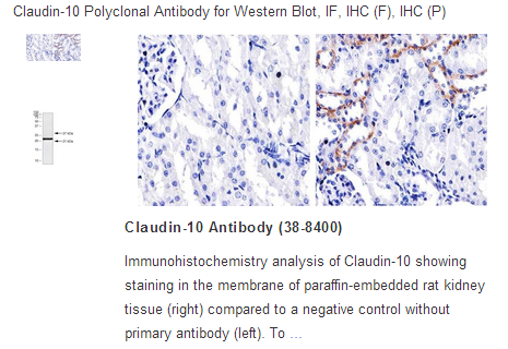 Claudin proteins are a family of proteins associated with tight junctions. Tight junctions are specialized regions of cell to cell contact; made up of network of strands to act as a molecular gasket for preventing the leakage of ions, water etc. between cells. They are abundant in luminal epithelial sheets where they maintain epithelial cell polarity. Different tissues exhibit different Claudin composition.