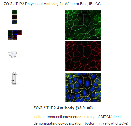 Tight junction proteins (TJPs) belong to a family of membrane-associated guanylate kinase (MAGUK) homologs that are involved in the organization of epithelial and endothelial intercellular junctions. TJPs bind to the cytoplasmic C termini of junctional transmembrane proteins and link them to the actin cytoskeleton.