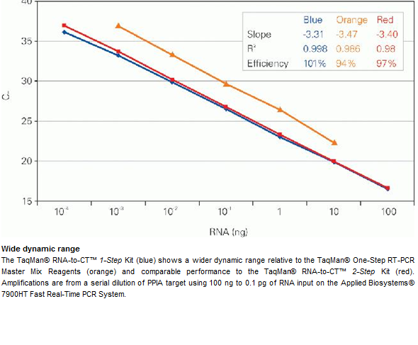 Efficiency across a Broad Range of Input Concentrations T™ 2-Step Kit, and is a significant improvement in dynamic range and sensitivity over the TaqMan® One-Step RT-PCR Master Mix Reagents.