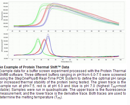 Save Time and Money with Your Sample Screening This solution significantly reduces the time and cost associated with screening samples relative to currently available methods. Protein Thermal Shift™ products that are run on our real-time PCR systems enable researchers to inexpensively and efficiently: