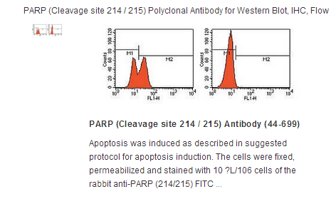 The antiserum was produced against a chemically synthesized peptide corresponding to N-terminus of cleavage site (214/215) of human PARP.