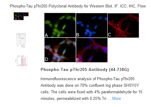 The antiserum was produced against a chemically synthesized phosphopeptide derived from the region of human Tau that contains threonine 205. The sequence is conserved in mouse and rat.