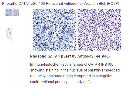 The antiserum was produced against a chemically synthesized phosphopeptide derived from a region of human GATA-4 that contains serine 105.