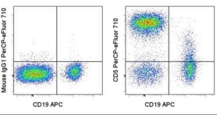 Description: The UCHT2 monoclonal antibody reacts with human CD5, a 67 kDa protein expressed by a majority of thymocytes and mature T cells and a subset of B cells. Signaling through the CD5 molecule activates T cells and binding of CD5 to its ligand on B cells, CD72, and plays an important role in T-B interaction and proliferation.\\\\The monoclonal antibody UCHT2 recognizes primate CD5.