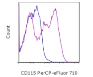Description: The AFS98 monoclonal antibody reacts with the mouse CD115 molecule, a receptor for macrophage colony stimulating factor (M-CSF) or colony stimulating factor-1 (CSF-1). CD115 is expressed by monocyte, macrophage, osteoclast, and some epithelial cells. It is a 150 kDa c-fms gene product and belongs to immunoglobulin family. CSF-1 signaling through CSF-1R regulates the proliferation and differentiation of cells in the monocytic lineage.