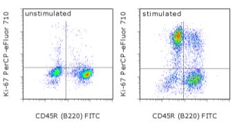Description: The monoclonal antibody SolA15 recognizes mouse and rat Ki-67, a 300 kDa nuclear protein. Ki-67 is present during all active phases of the cell cycle (G1, S, G2, and mitosis), but is absent from resting cells (G0). Ki-67 is detected within the nucleus during interphase but redistributes to the chromosomes during mitosis. Ki-67 is used as a marker for determining the growth fraction of a given population of cells. In studies of tumor cells, the “Ki-67 labeling index” refers to the number of Ki-67 positive cells within the population and this is used to predict outcome of particular cancer types. Ki-67 has been shown to interact with the DNA-bound protein chromobox protein homolog 3 (CBX3) (heterochromatin).