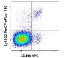 Description: The 4D11 monoclonal antibody reacts with Ly-49G2 (also known as LGL-1). The Ly-49 family of NK-cell receptors, members of the C-type lectin superfamily, are disulfide-linked type-II transmembrane protein homodimers with extracellular carbohydrate recognition domains, which bind to MHC class I alloantigens. The Ly-49 family members are expressed independently, such that an individual NK or T cell may display more than one class of Ly-49 receptor. Ly-49G2 is an inhibitory receptor expressed on subsets of natural killer (NK) cells, NK-T cells (in all strains tested), and on a population of memory CD8+ T cells (in C57BL/6 mice). The 4D11 antibody has been reported to cross react with the Ly-49AB6, Ly-49ABALB, and Ly-49T129/J inhibitory receptors and Ly-49LCBA/J activatingreceptors. The proportion of NK-T cells expressing Ly-49A and Ly-49G2 is higher in the thymus than in liver, and there is evidence that down-regulation of Ly-49 receptor expression is necessary for normal NK–T-cell development to occur.