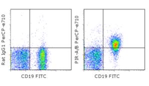 Description: This 6C1 monoclonal antibody reacts with mouse paired Ig-like receptors of activating (PIR)-A and -B. These cell surface glycoproteins, which contain six Ig-like domains yet distinct transmembrane and cytoplasmic regions, are expressed together on B lymphocytes, dendritic cells, macrophages, granulocytes, platelets, and mast cells. T cells, NK cells, and erythrocytes do not express these receptors. The PIR-A receptor interacts with signaling molecules containing immunoreceptor tyrosine-based activation motifs (ITAMs) which lead to its activating function. In contrast, the PIR-B receptor associates with proteins possessing immunoreceptor tyrosine-based inhibitory motifs (ITIMs); therefore, this receptor has been shown to have an inhibitory function. PIRs bind MHC class I to modulate cell signaling and homeostasis of the immune system. Moreover, PIR-B knockout mice have been shown to exhibit susceptibility to Salmonella infection.