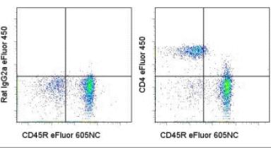Description: The RM4-5 monoclonal antibody reacts with the mouse CD4 molecule, a 55 kDa cell surface receptor expressed by a majority of thymocytes, subpopulation of mature T cells and dendritic cells. CD4 binds to MHC class II on the surface of antigen presenting cells and plays an important role both in T cell development and in optimal functioning of mature T cells. In T cells, CD4 associates with protein tyrosine kinase p56lck through its cytoplasmic tail. Binding of RM4-5 is blocked by GK1.5.