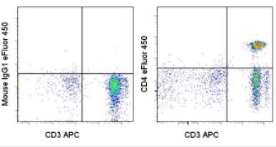 Description: The RPA-T4 monoclonal antibody reacts with human CD4, a 59 kDa cell surface receptor expressed by a majority of thymocytes, subpopulation of mature T cells (T-helper cells) and in low levels on monocytes. CD4 is a receptor for the human immunodeficiency virus (HIV). RPA-T4 blocks HIV binding and mixed lymphocyte reaction. The RPA-T4 antibody recognizes a different epitope than the OKT4 monoclonal antibody, and these antibodies do not cross-block binding to each other's respective epitopes.