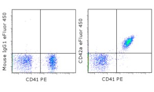 Description: This GR-P monoclonal antibody reacts with human CD42a, which is also known as glycoprotein IX (GPIX). CD42a is a 22-kDa transmembrane protein that is constitutively expressed on platelets and megakaryocytes. CD42a associates with CD42b, CD42c, and CD42d to form the GPIb-V-IX complex, which binds the von Willebrand factor, an endothelial adhesion protein, to mediate platelet adhesion and activation. This binding results in platelet aggregation at sites of vascular injury. This receptor complex has also been demonstrated to bind thrombin, factors XI and XII, P-selectin, and Mac-1. Finally, a point mutation within the leucine-rich motif of CD42a has been linked to Bernard-Soulier syndrome.