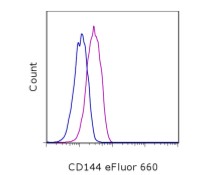 Description: The eBioBV13 (BV13) monoclonal antibody reacts with mouse VE-Cadherin (CD144). VE-Cadherin is a 120 kDa member of the type II Cadherin family, characterized by the presence of 5 extracellular cadherin domains (ECD), and anchored to the actin cytoskeleton through their cytoplasmic tail. VE-Cadherin mediates homophilic adhesion between neighbouring endothelial cells and is localized within specialized structures at cell-cell contacts, called adherens junctions. VE-Cadherin is expressed constitutively throughout the entire vasculature, and is required for numerous endothelial cell functions including migration, survival, contact-dependent growth inhibition and endothelial cell assembly into tubular structures. Furthermore, it is thought that VE-Cadherin+CD45- cells from the yolk sac or aorta-gonad-mesonephros (AGM) have the potential to give rise to hematopoietic cells.