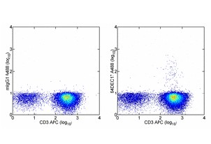 Intracellular staining by eBio64DEC17 antibody identifies the same cell population as the eBio64CAP17 antibody, as can be seen in co-staining experiments using both antibodies.