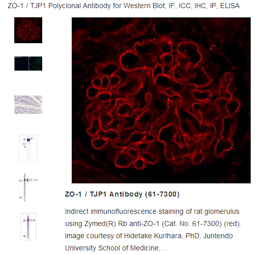 兔抗-ZO-1 (Rabbit anti-ZO-1);人、小鼠、大鼠、鸡和豚鼠 ZO-1 的特异性非偶联多克隆抗体。 该抗体经验证可用于 Western Blot、免疫组织化学、免疫分析 (ELISA) 和免疫细胞化学/免疫荧光。 Anti-ZO-1 能识别 TJP1 基因(也称 Tjp1,Tjp1_preidicted)的表达产物。
