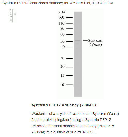 Syntaxins belong to a family of SNARE proteins. The yeast Saccharomyces cerevisiae has about 7 genes similar to syntaxin and there are presently 15 types of syntaxin genes in the human genome. In presence of other cytoplasmic proteins like the N-ethylmaleimide-sensitive factor (NSF) and SNAP; synatxins can combine various vesicular transport systems for the exocytic and endocytic pathway. This is very important for the functioning and for bringing about specificity to the vesicular combination process.. The syntaxin protein in yeast is also known as the Pep12 protein. The function of this Pep12 protein in the yeast is to transport vesicles from the Golgi apparatus.