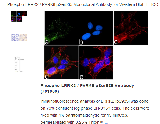 LRRK2 belongs to the leucine-rich repeat kinase family commonly known as Dardarin. The LRRK2 gene encodes for a protein with an ankyrin-repeat region, a leucine-rich repeat region, a kinase domain, a RAS domain, a GTPase-domain, a MLK-like domain, and a WD40 domain. Proteins with leucine-rich regions play important roles in activities that require protein-protein interactions, such as transmitting signals or helping to assemble the cell's structural framework. Phosphorylation of LRRK2 at multiple sites including serine 910 and serine 935 regulates LRRK2 mediated cellular activities by affecting binding of dimeric 14-3-3 protein. Phosphorylation at Ser910, found to be constitutive in various tissues, is caused by protein kinase A. In humans, he gene is present on the q arm of chromosome 12.