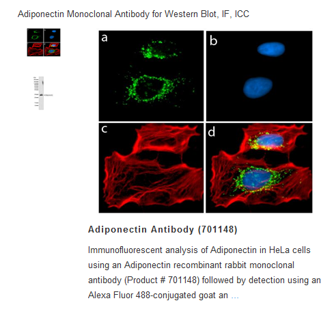 Recombinant protein corresponding to amino acids 57–244 of human adiponectin