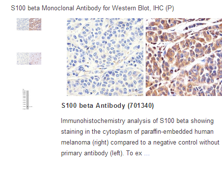 S100 calcium binding protein B protein family. S100B is present in the cytoplasm and nucleus of various cell types. It plays a role in intracellular Ca2+-dependent functions through regulation of calcium homeostasis, and transduction of intracellular Ca2+ signals. S100B is involved in the regulation of the cell cycle, differentiation, and apoptosis. It also is involved in cell motility through modulation of membrane–cytoskeletal interactions. In humans, the S100B gene is present at the 21q22 locus.