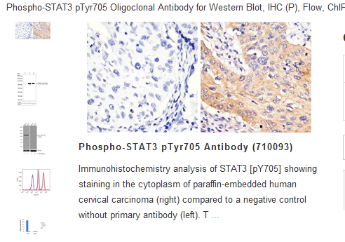 STAT3 belongs to the family of STAT (signal transducers and activators of transcription) proteins which are phosphorylated by receptor associated kinases, translocate to the nucleus, and act as transcription factors in response to cytokines and growth factors. Coactivators such as CREB-binding protein are required for the transcriptional activation by STAT3. It also can be activated by Interferon-alpha, Interferon-gamma, EGF, PDGF and IL6. Phosphorylation on tyrosine 705 by JAK1 and JAK2 is essential for STAT3 dimer formation, nuclear translocation, and DNA binding activity. In humans, the STAT3 gene is located on the q arm of chromosome 17.