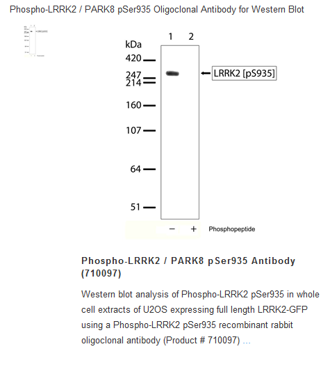 LRRK2 belongs to the leucine-rich repeat kinase family commonly known as Dardarin. The LRRK2 gene encodes for a protein with an ankyrin-repeat region, a leucine-rich repeat region, a kinase domain, a RAS domain, a GTPase-domain, a MLK-like domain, and a WD40 domain. Proteins with leucine-rich regions play important roles in activities that require protein-protein interactions, such as transmitting signals or helping to assemble the cell's structural framework. Phosphorylation of LRRK2 at multiple sites including serine 910 and serine 935 regulates LRRK2 mediated cellular activities by affecting binding of dimeric 14-3-3 protein. Phosphorylation at Ser910, found to be constitutive in various tissues, is caused by protein kinase A. In humans, he gene is present on the q arm of chromosome 12.