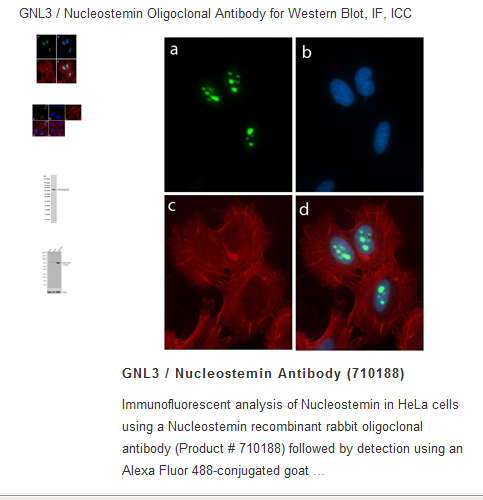 Recombinant protein corresponding to amino acids 1–180 of human nucleostemin