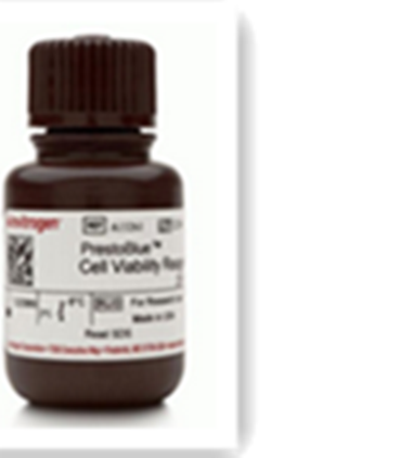 Get high quality cell viability results and instant time savings with PrestoBlue® Cell Viability Reagent. PrestoBlue® is a ready to use cell permeable resazurin-based solution that functions as a cell viability indicator by using the reducing power of living cells to quantitatively measure the proliferation of cells. When added to cells, the PrestoBlue® reagent is modified by the reducing environment of the viable cell and turns red in color, becoming highly fluorescent. This color change can be detected using fluorescence or absorbance measurements